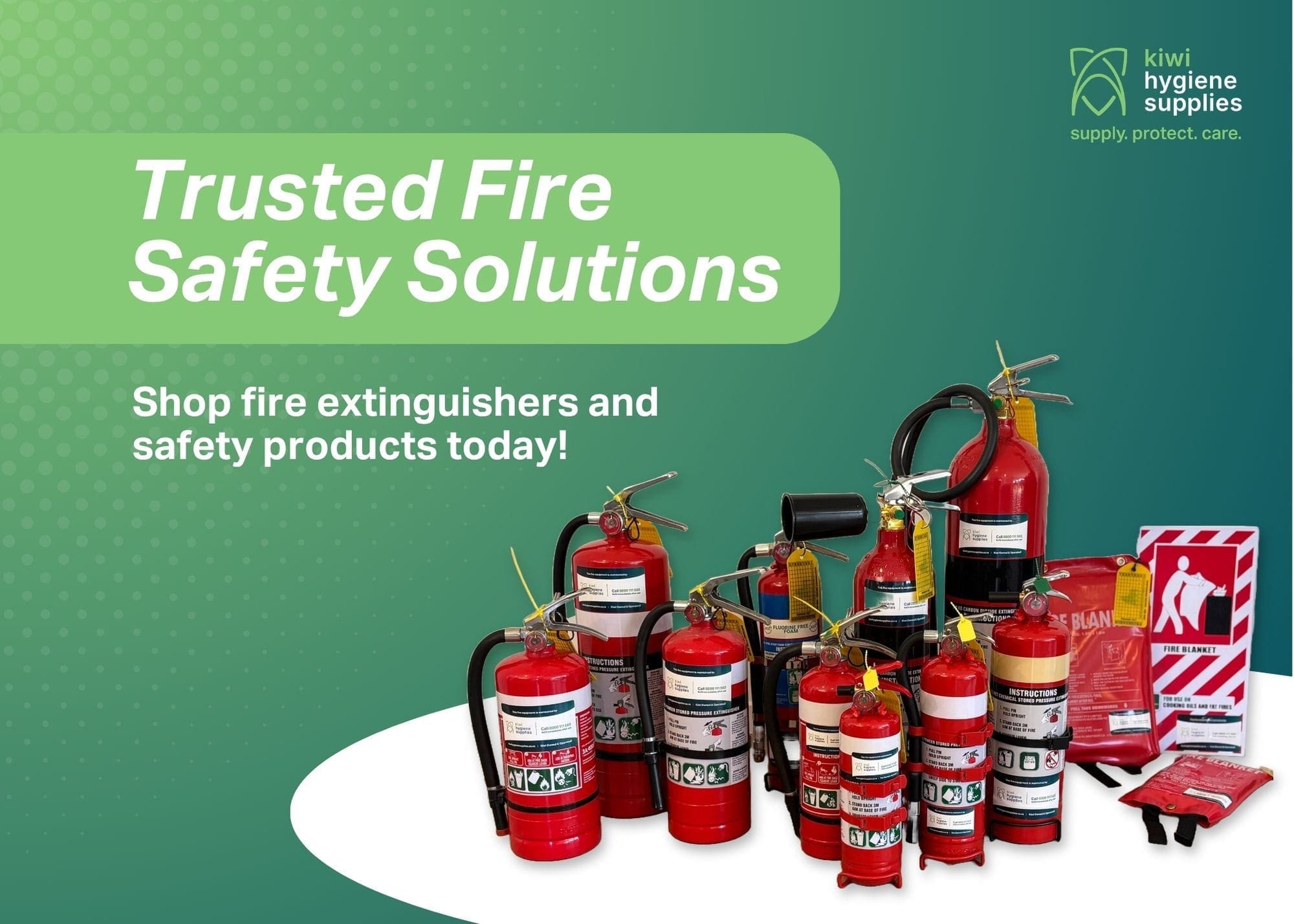 We are suppliers of a complete range of commercial cleaning products, hygiene supplies, safety equipment and fire extinguishers sent direct to your home or business. Free shipping is available New Zealand wide on all orders over $150.